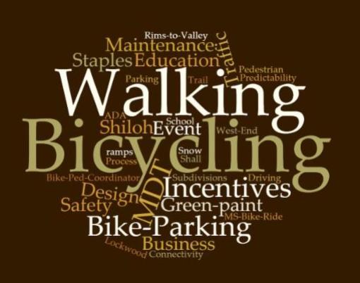 Would you like to help our city become more bicycle and pedestrian-friendly? The Bicycle Pedestrian Advisory Committee is a group of seven individuals appointed by City Council, the County Commissioners and the Planning Board, to advise these governing organizations about matters related to bicycling and walking infrastructure. We meet on fourth Tuesday of each month, from 11:30 a.m. to 1 p.m., in the Miller Building downtown.